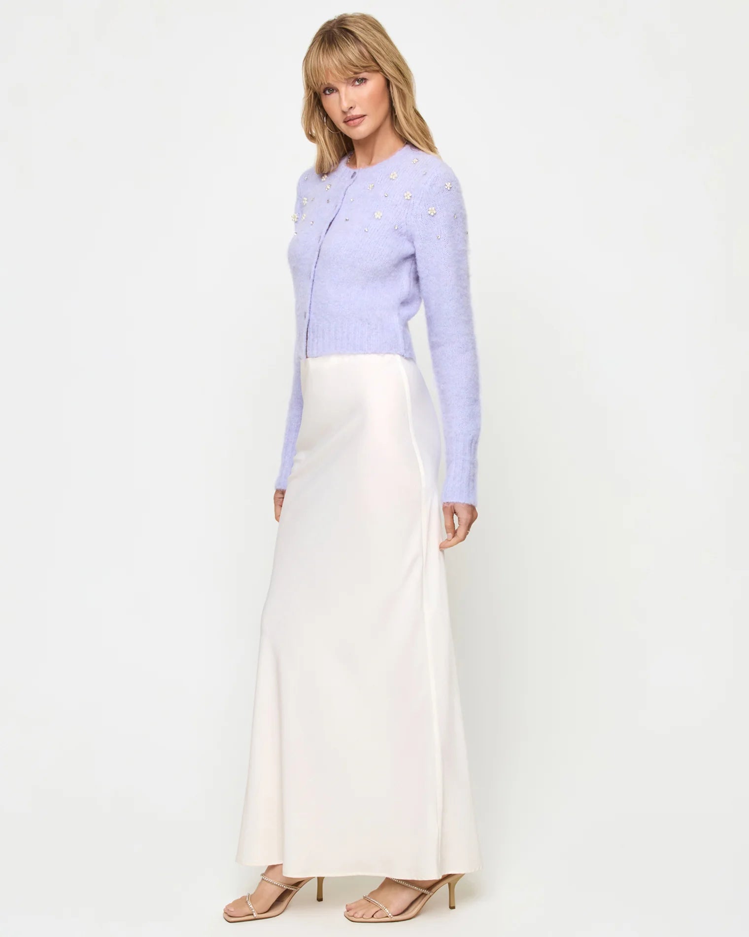 Rhinestones are a girl's best friend. The Brynn Cardigan has a cropped hemline, v-neckline, and a button down front. Wear it with your favorite denim for a look that'll take you from season to season.