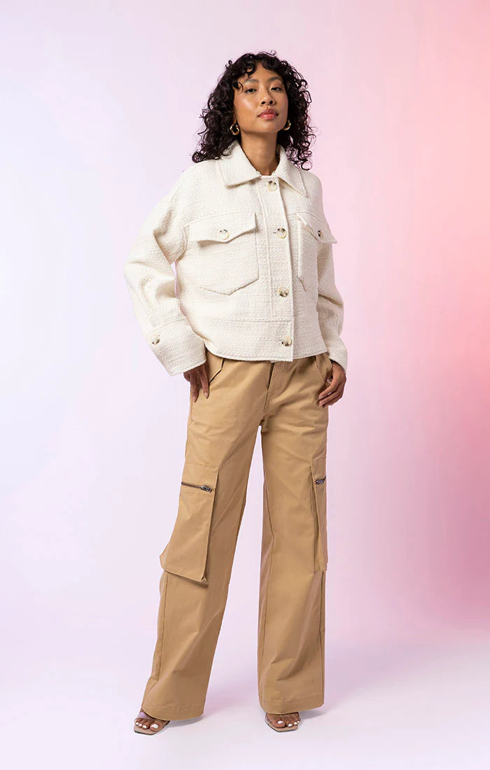SHELL:69% cotton, 31% polyester, Lining: 90% polyester, 10% spandex.