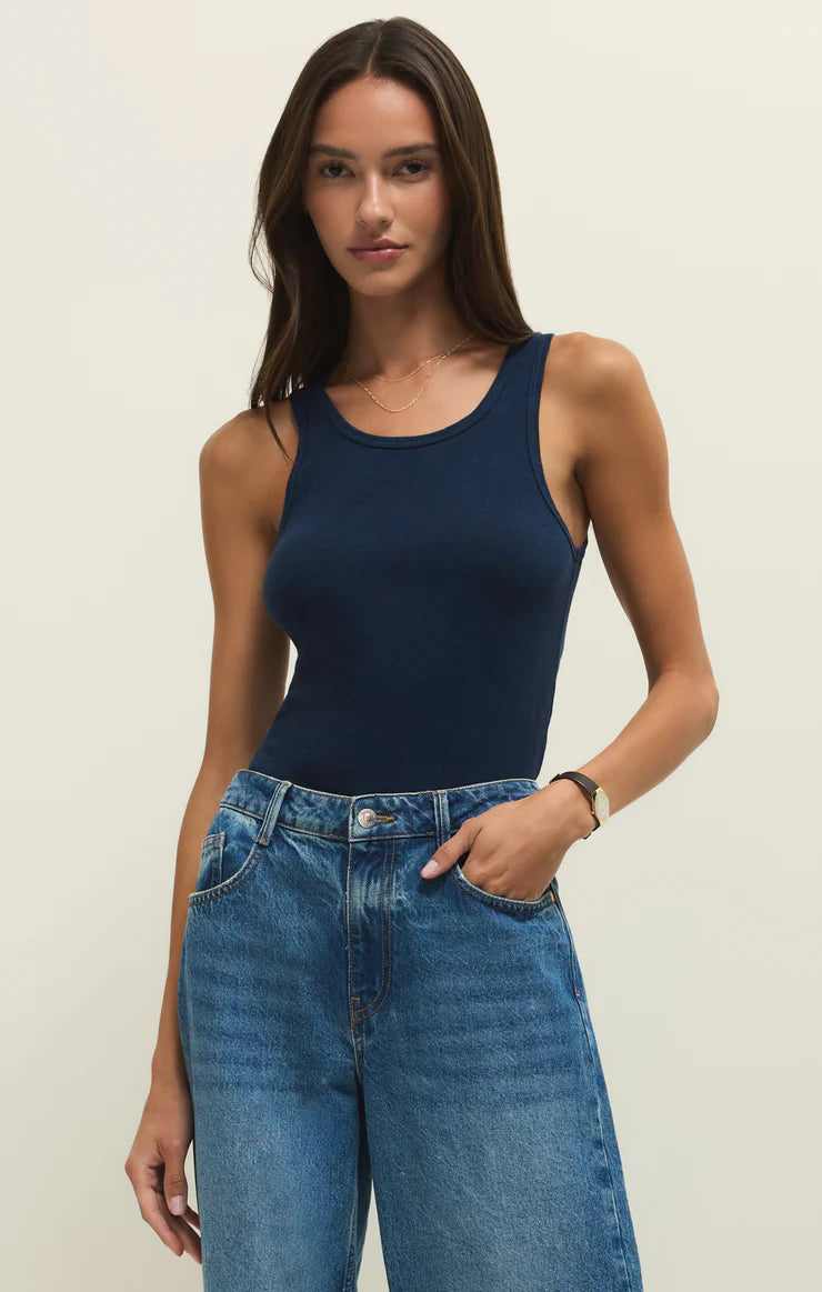 Soft and breathable with a naturally lived-in feel, this scoop tank is made from premium brushed slub jersey for all-day comfort. The subtle texture adds depth to your outfit, whether you wear it solo on sunny days or layered under your favorite shirt.