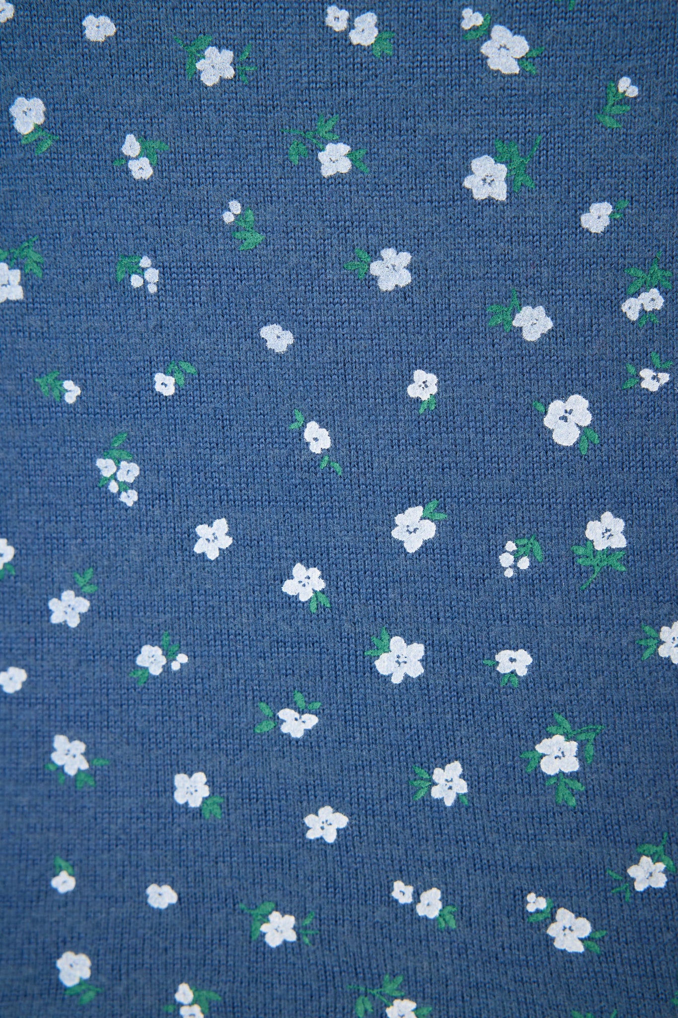 Dreamy and oh-so darling, this pajama tank is crafted from soft peachy jersey with a ditsy floral print on a blue backdrop, finished with striped trim at the neckline and straps. Its easy fit keeps things comfy and sweet—just right for lounging or layering under a cozy sweatshirt.