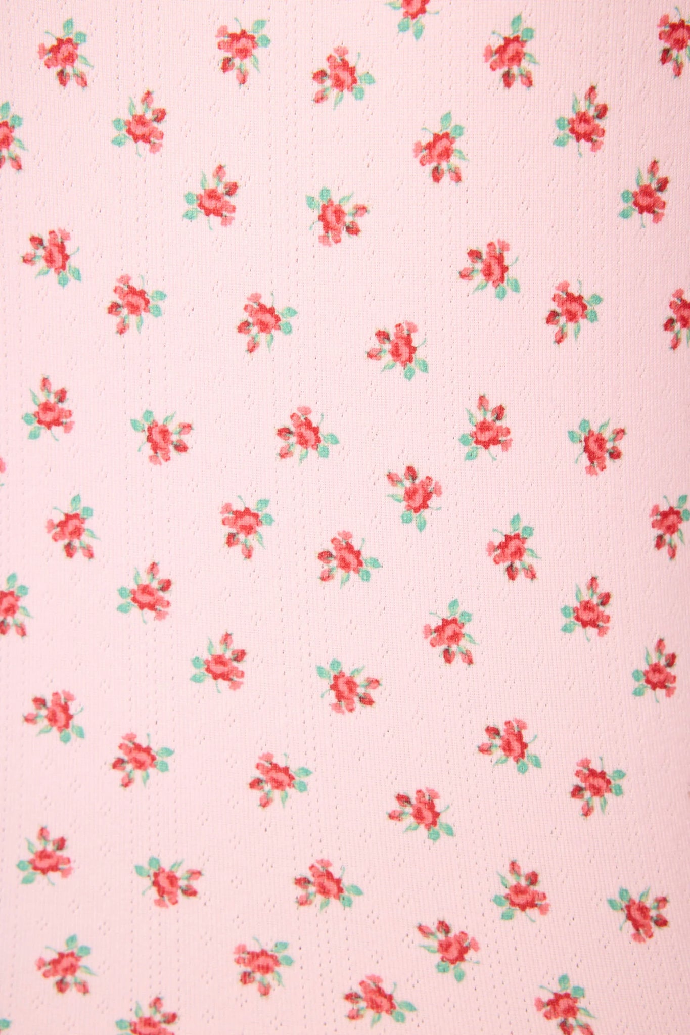 Classic girlhood charm nods to holiday cheer in this pink pointelle pajama set, complete with a long-sleeve crew top and wide-leg pants in a ditsy floral motif. Relaxed and cozy, it’s made for lounging with timeless appeal.