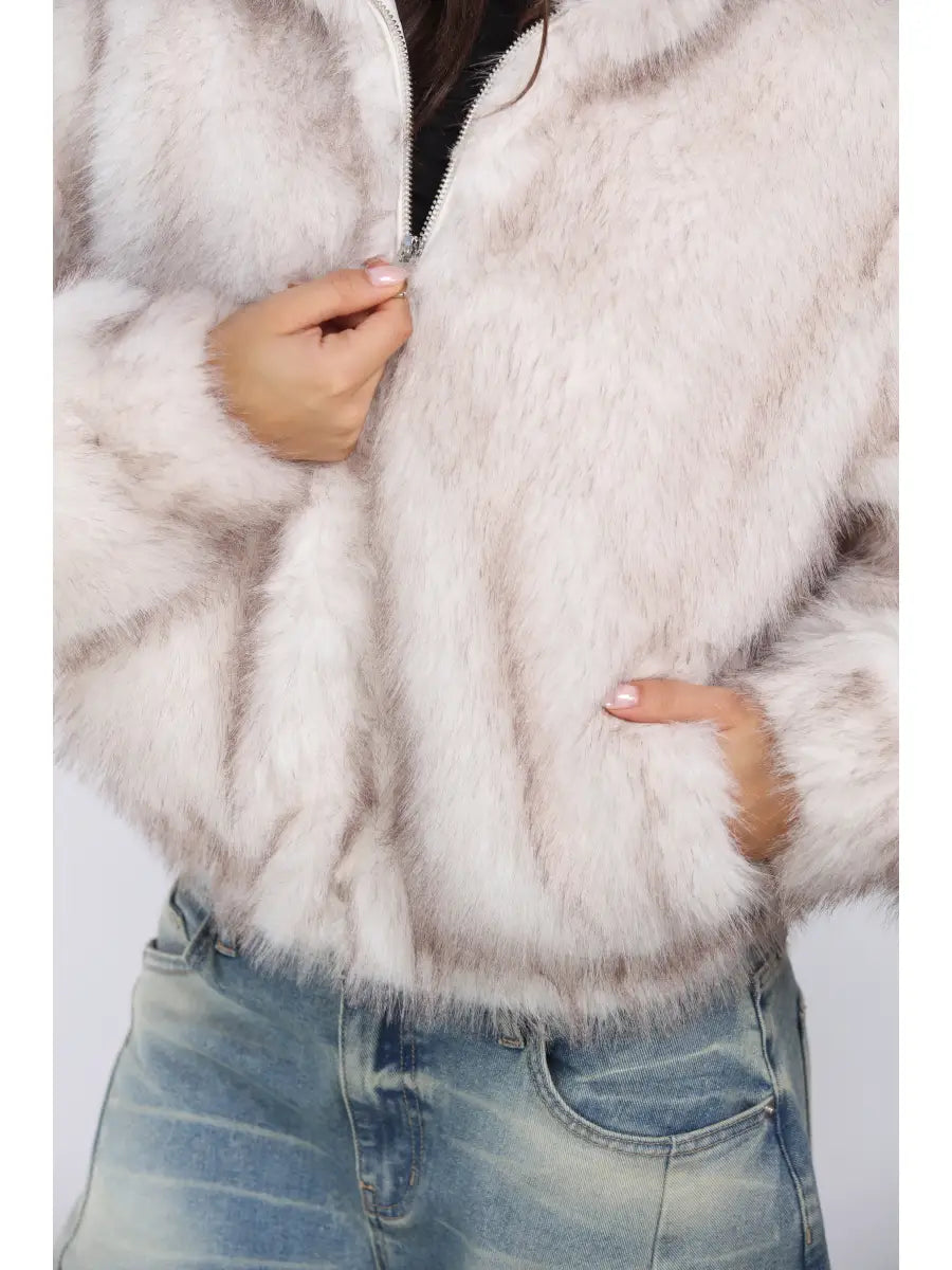Regular Size Bomber Long Sleeves Faux Fur Jacket Front Zip Up & Hooded Model Size: Height: 5'8" / Bust: 34" / Waist: 25" Model Is Wearing Size: Small Bust: 45 1/2" Length: 21 1/2" Origin: Imported