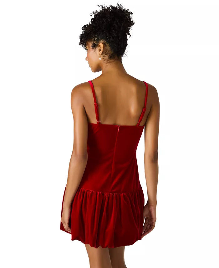 In a sweet, airy spirit, this playful and charming Steve Madden Giovanna sleeveless bubble mini dress is crafted from stretch velvet. In a bouncy silhouette, it features a flattering square neck and a center back zipper. Perfect for festivities.