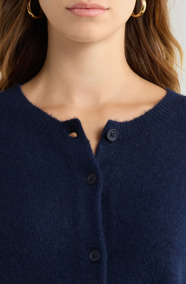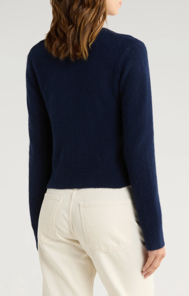 The Matilda is a cropped take on the cardigan, with a luxurious cashmere blend. It's cute enough to wear on its own or add dimension by layering.
