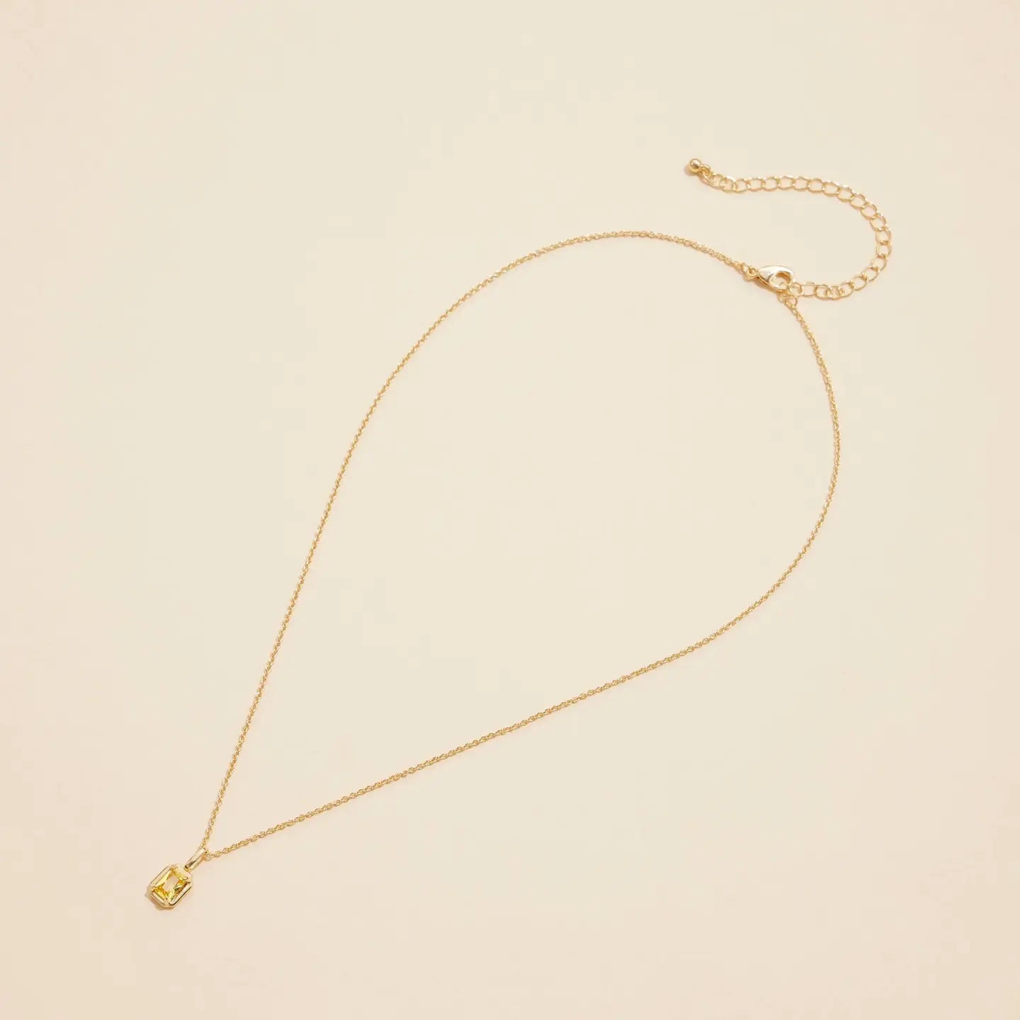 Celebrate your unique story with this elegant gold birthstone pendant necklace. Featuring a radiant rectangular-cut gemstone set in a sleek gold-plated frame, each necklace symbolizes a birth month with vibrant color and timeless charm. Perfect for gifting or personal wear, this necklace adds a meaningful and stylish touch to any outfit. Its lightweight chain offers comfortable all-day wear and layers beautifully with other pieces for a custom look. A must-have for birthdays, anniversaries, or just because. Materials: Gold-Plated Alloy & Crystal Stone Pendant: Emerald-Cut Birthstone Design Style: Minimalist, elegant, personalized Ideal for: Gifting, everyday wear, special occasions 16" + 3" Extender