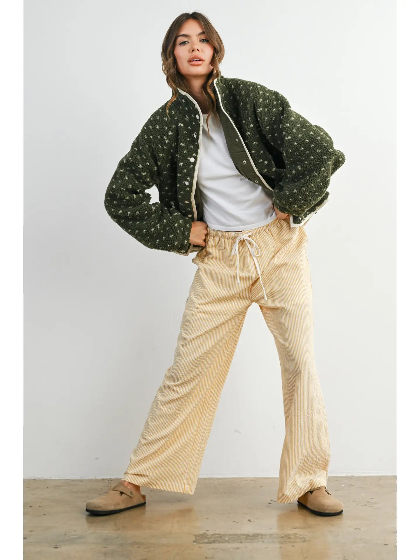 Stay extra cozy with this high pile fleece puffer jacket. Featuring ultra-soft fleece and a quilted puffer design, it offers maximum warmth and comfort on chilly days. Perfect for layering, this jacket blends plush texture with a relaxed, stylish fit for a cold-weather essential you'll reach for again and again.