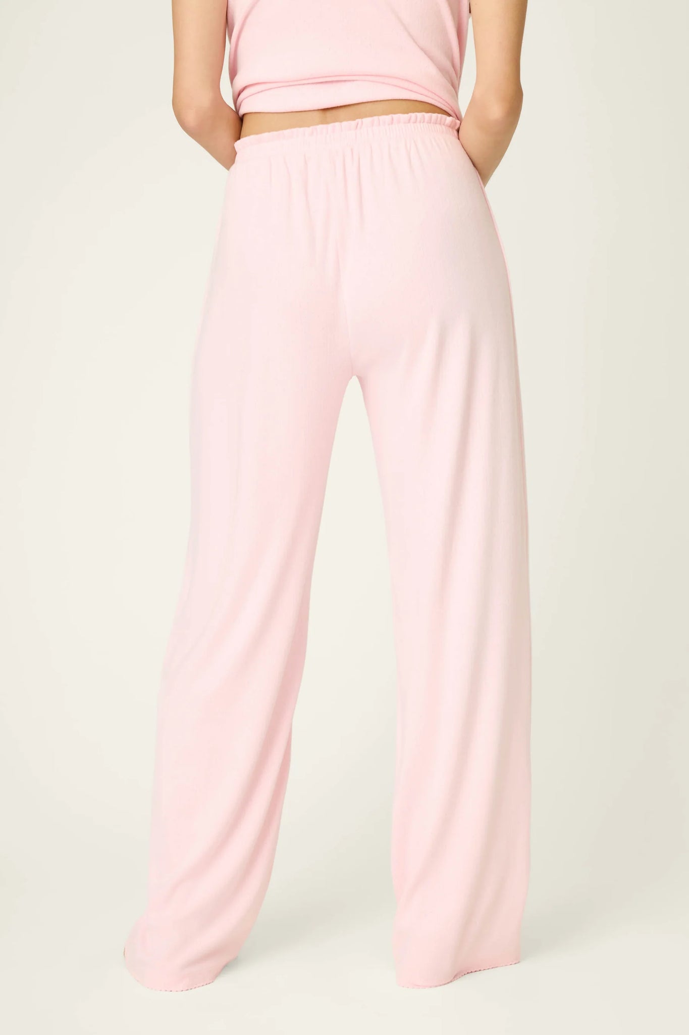 Soft, stretchy, airy patterned pointelle—truly what cloud-soft dreams are made of. These full-length lounge pants offer a relaxed open-leg fit, delicate picot trim at the waistband, and an adjustable drawstring. The ballet-pink shade adds a soft, feminine feel to your lounge wardrobe.