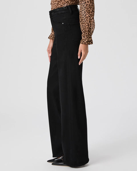 - Sasha is our high-rise wide leg with a fitted top block and a slightly relaxed fit. In our best-selling black shadow wash with silver waistband buckles, this pair is cut from TRANSCEND, the original high-stretch fabric that redefined comfort in denim.