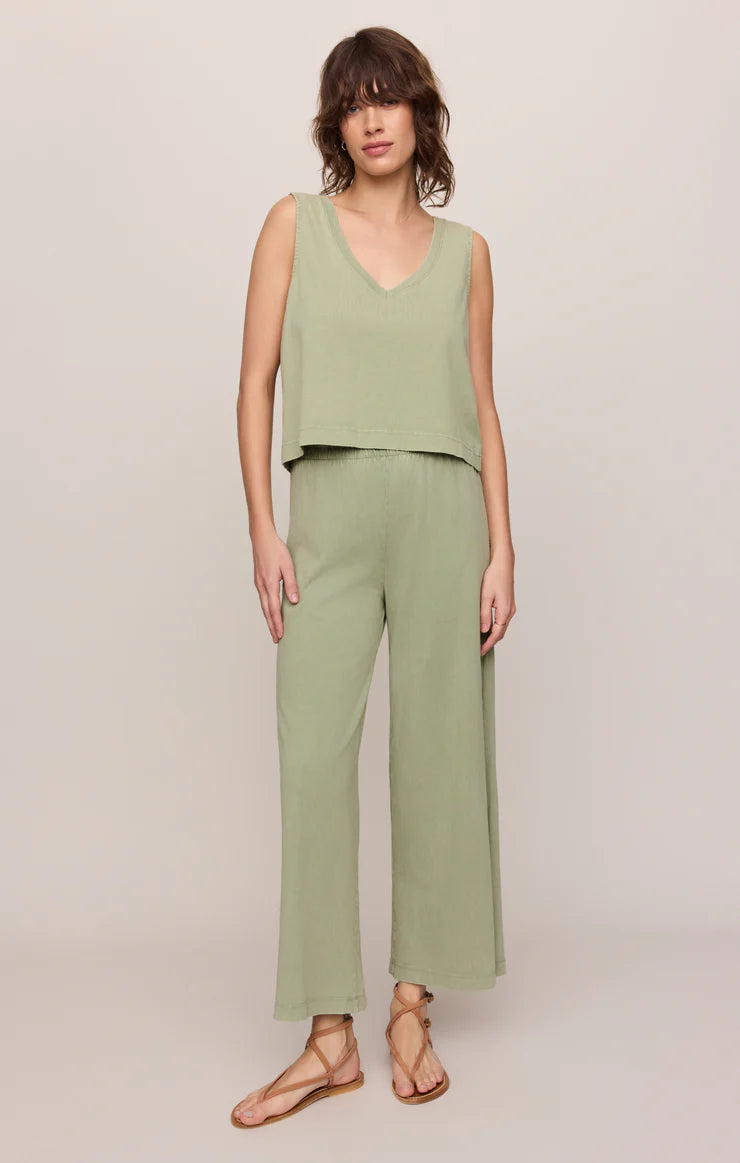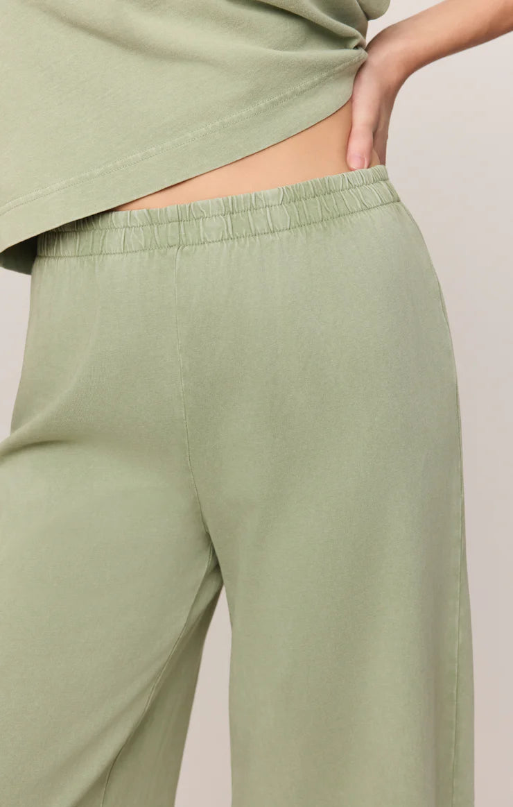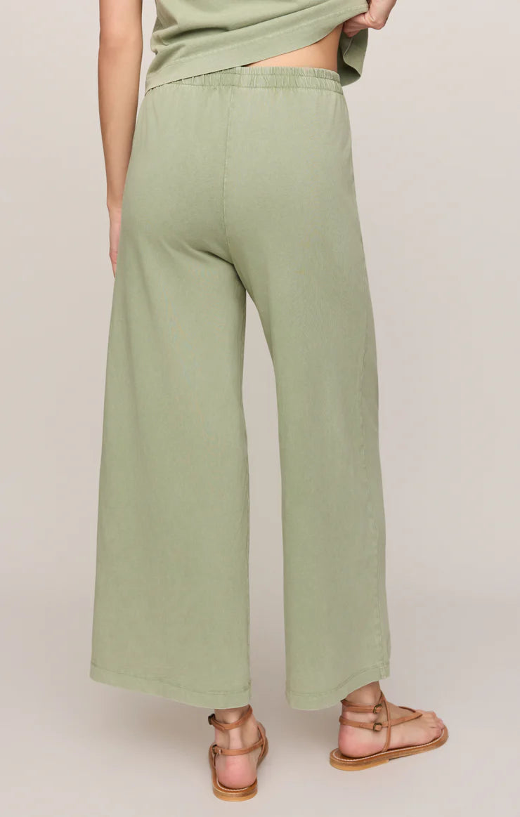This pant is made with a 100% cotton jersey knit fabric and features a wide flare silhouette with an elastic waistband. This pant is a relaxed but stylish piece that looks so good with any of our everyday tops.