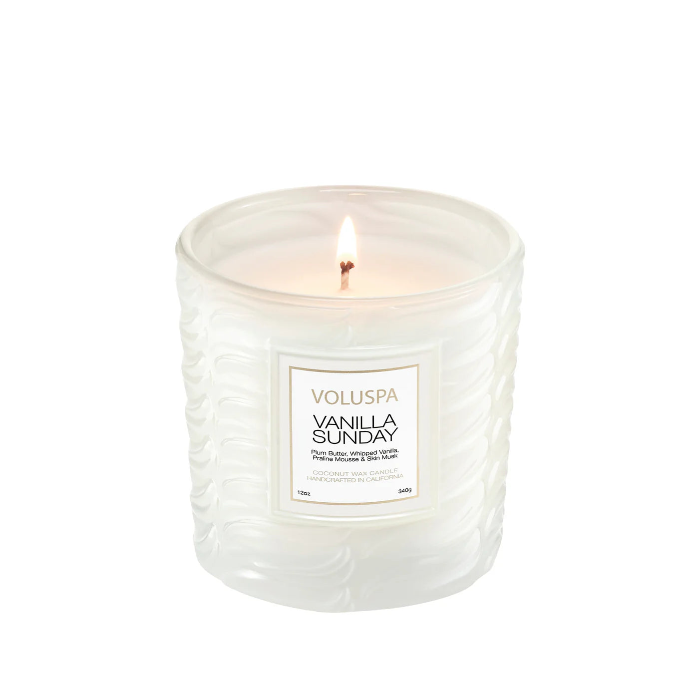 Voluspa Vanilla Sunday Classic Candle: Sundays are not meant to be scary. Let your hair down and sink into a swirl of comforting sweetness. Invite cravings of endless possibilities and tantalizing inspiration with a dollop of velvety Plum Butter and airy Freesia. Whipped Vanilla and Praline Mousse melt into a soft cloud of Orris, Amber, and Skin Musk. Don’t worry about tomorrow, live in a Vanilla Sunday.